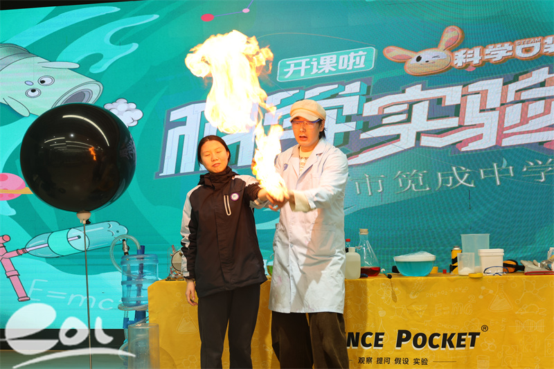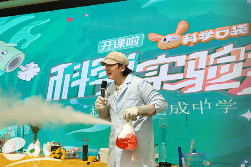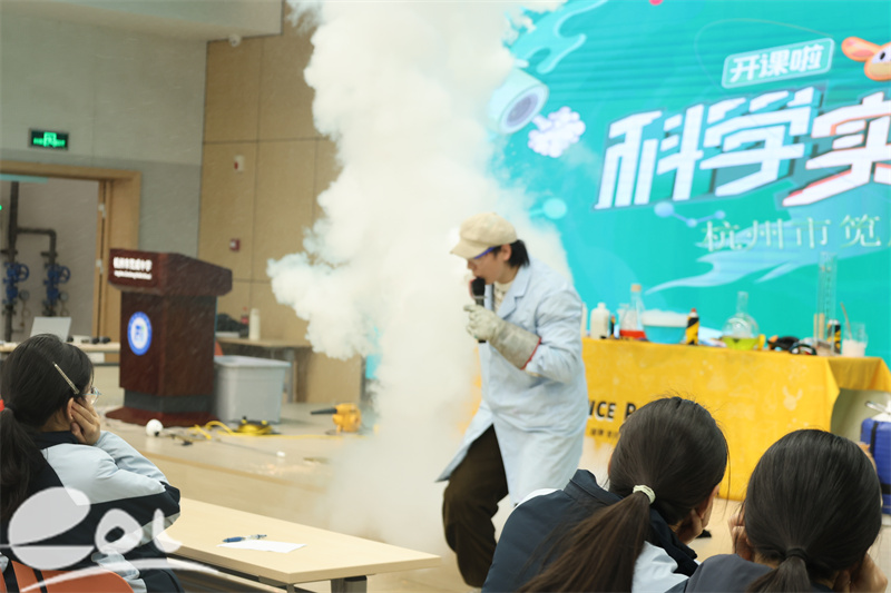 轰然的火焰在掌心燃烧,梦幻的气泡点燃竟能复刻出鞭炮炸响般的轰鸣,Q弹柔嫩的玫瑰瞬时变得如薯片般酥脆一碰即碎,——这不是科幻大片,而是杭州市笕成中学“科学狂想秀”的真实现场!近日,一场集趣味实验、知识科普与安全教育于一体的科学盛宴于杭州市笕成中学燃情开启。