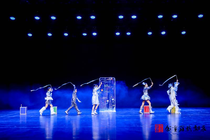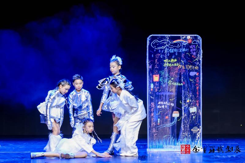 《追逐繁星》由学校戏剧课程教师俞宏杰原创剧本,青年教师胡悦联合执导,排练期间还特别邀请俄罗斯圣彼得堡国立舞台艺术学院艺术学硕士李佳轩老师到校指导并担任艺术顾问,专业的创作与指导让剧目质量更有保障。剧目以孩子的视角展开,讲述了少年们面对繁重学习任务遗失欢乐后,主动反思教育现状、寻找心灵自由、重拾童年快乐的故事,紧扣当下义务教育艺术教育热点,以小见大的叙事既真实反映了新时代孩子的心声,也客观展现了当下的教育生态,成为本次展演中极具现实意义的亮点剧目。
