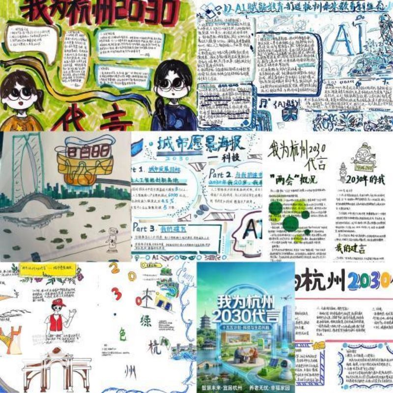 钱塘江畔的少年们,用画笔勾勒城市愿景,用文字为家乡建言献策。近日,杭州市钱江外国语实验学校“我为杭州2030代言”寒假特色作业第一波作品新鲜出炉。本次特色作业紧扣杭州两会2030城市规划内容,聚焦教育、科技、社区建设等热门议题,要求融入城市发展关键数据、个人成长愿景、具体可行建言三大核心元素。