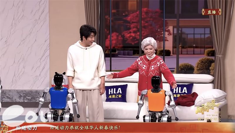 在节目中,机器人不仅利落完成侧手翻、舞蹈等表演,更有仿生机器人以惟妙惟肖的神态配合蔡明,构建出“双蔡明”的视觉奇观。这份硬核科技与舞台艺术的碰撞,尽显中国在人形机器人领域的创新实力。