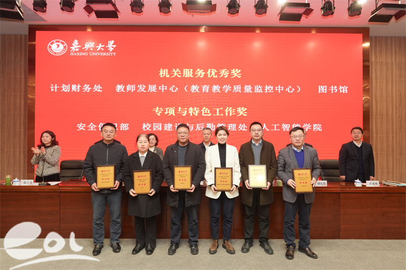 会上,副校长张琦宣读了学校2025年度学院(部门)工作考评结果。与会校领导为2025年度学院(部门)工作考评优秀单位颁奖。