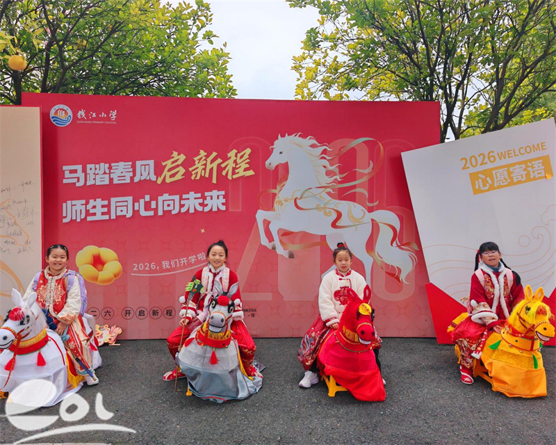 春启新程,马跃华章。3月4日,杭州市钱塘区钱江小学举行2025学年第二学期开学迎新活动。一场热闹的“骑马上学”沉浸式体验,让全体学子在马年民俗与非遗文化的浸润中,元气满满开启新学期,校园处处洋溢着喜庆氛围。