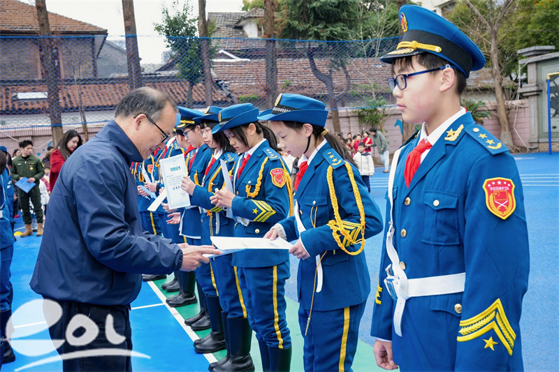 过去一学期,校国旗班队员无论严寒酷暑,日复一日守护国旗尊严。典礼上,周振洋教官与队员们登上领奖台,楼朝辉校长为他们颁发荣誉勋章与证书。汗水与赤诚,在此刻凝聚成最亮的星,台下掌声如潮,向这群默默奉献的少年致敬。