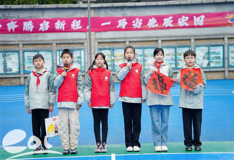 随后,二(4)中队、五(2)中队代表走上舞台,分享寒假小队实践的精彩瞬间。从小营红巷到二十三坊巷,从面塑马灯到新春福字,一张张照片、一段段讲述,记录着孩子们走出校园、拥抱历史、探索社会的足迹。学校书记王润毛、副校长王林慧为优秀小队颁发奖状,掌声与笑容交织,成长的故事在春风中传递。
