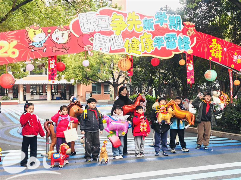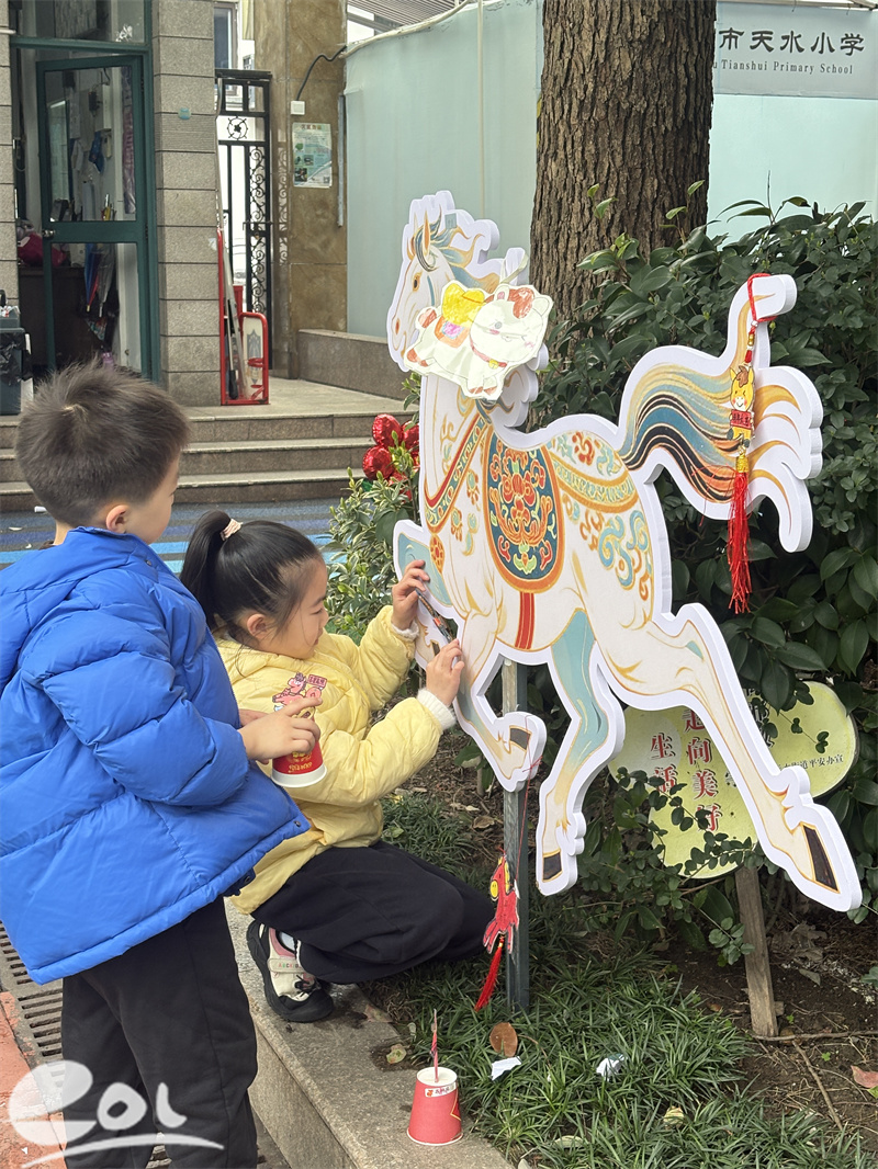 校门口,一块绘有奔腾骏马巨型迎新墙格外醒目,吸引了所有天水娃的目光。最受欢迎的莫过于一个个英姿飒爽的“小马”气球吉祥物,它们早早地守候在校门两侧,迎接每一位返校的“小马驹”。同学们纷纷在此驻足合影,定格下新学期充满期待的第一张笑脸。这面“迎新墙”不仅成为了校园里最亮丽的风景线,更承载着学校对同学们“龙马精神,一马当先”的美好祝愿。