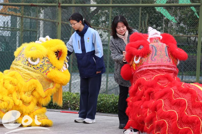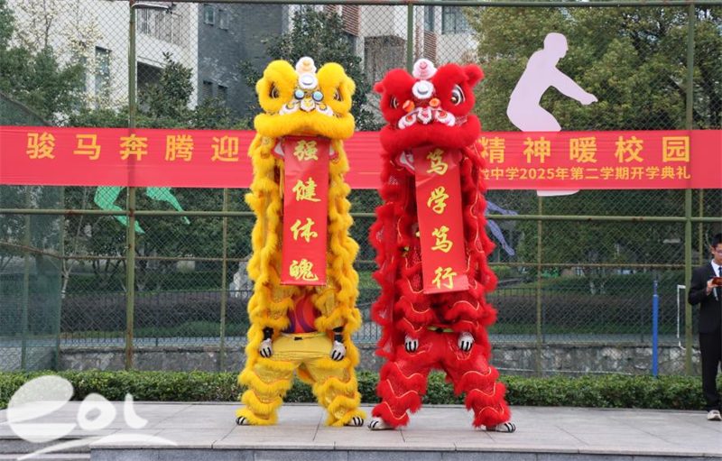在师生的期待中,典礼迎来最具传统特色的新学期启动仪式——舞狮点睛。“一点左眼,神采飞扬;二点右眼,志在四方;三点额头,吉星高照。”在欢腾的锣鼓声中,吴书记与910班章清心携手为醒狮点睛,沉睡的醒狮瞬间焕发生机。这寓意着丁兰实验中学新学期蒸蒸日上,每一位“兰心少年”都将以昂扬之姿策马扬鞭,奔赴新程。