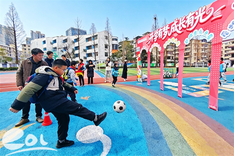 沉寂了一个假期的德天校园,再次被孩子们清脆的笑声唤醒。3月4日,杭州市德天实验小学以“学习雷锋好榜样,足启新程向目标”为主题,开展了别开生面的开学返校特色活动暨2025学年第二学期开学典礼,将校园足球特色与雷锋精神深度融合,为新学期注入满满仪式感与正能量。