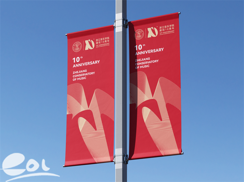 浙音10周年校庆标识以“弦歌十载,尽善致远” 为核心设计理念,将具象符号与数字“10”创意同构,形成独具韵味的视觉形象。