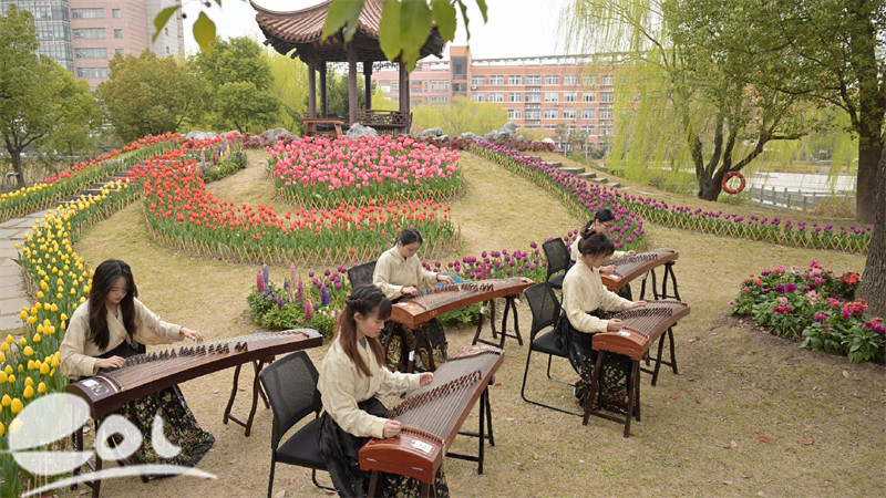 当千年国乐邂逅烂漫春花,一场无需舞台、不设座席的沉浸式艺术盛宴,在中国计量大学校园的暖阳下悄然绽放。
