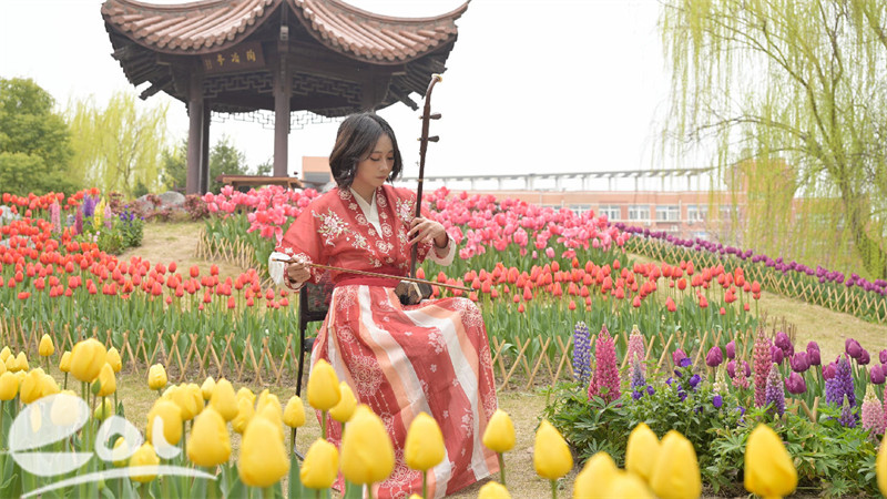 古琴《酒狂》深邃旷远、古筝《秦土情》悠扬深情、二胡《战马奔腾》磅礴气势……悠扬乐声穿透花海,成为校园里最动人的春日风景。过往师生纷纷循声驻足,或倚花聆听,或举镜记录。原本步履匆匆的校园,因这堂不期而遇的“美育课”,多了几分诗意与温情。