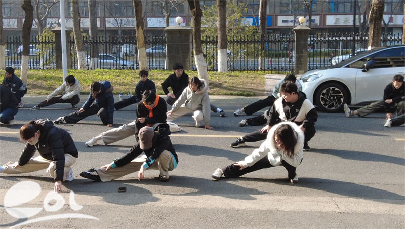 随后,体工部夏秋冬老师带领师生开展专业的赛前拉伸,确保大家做好充分的热身准备,避免运动损伤。同时,两个班级队伍之后还安排了1-2名后勤同学骑电动车随行,携带药品、饮用水等物资,记录精彩瞬间的同时保障参赛人员的安全。