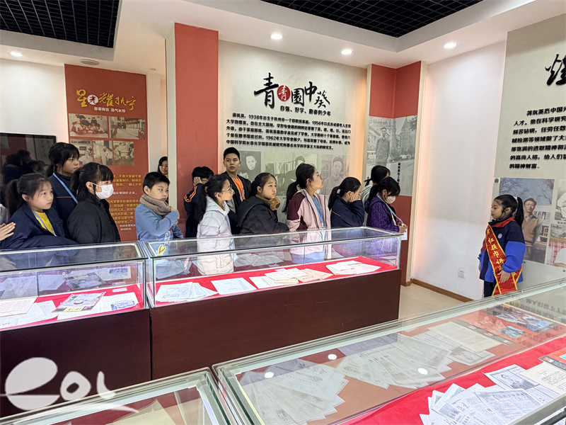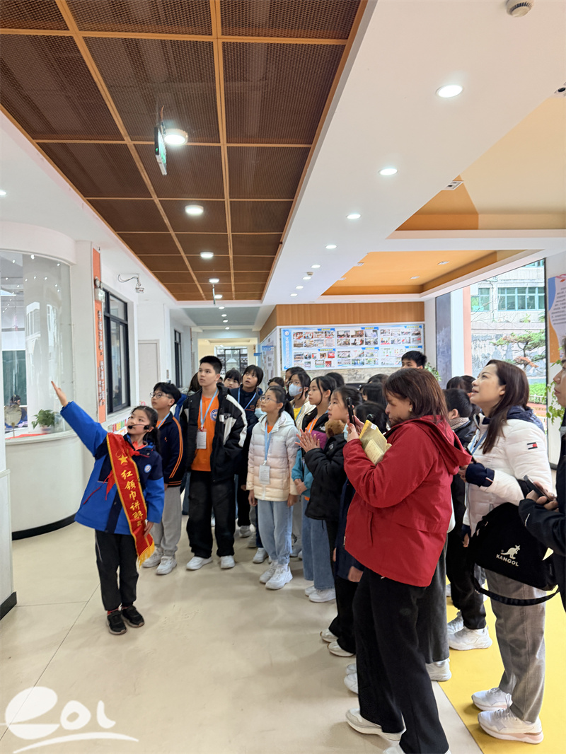 在红领巾讲解员的热情引导下,交流团先后参观了光谱大厅、“筑英之光”新型学习空间、蒋筑英纪念馆等校园特色空间。讲解员们生动的讲解,让香港小伙伴们深入了解了著名光学专家蒋筑英精神的内涵,也感受到了校园浓厚的文化氛围与科创气息,一路走走停停、交流探讨,彼此的陌生感在欢声笑语中悄然消散。休息间隙,大家共同观看学校介绍视频,品尝精心准备的茶歇,温馨的氛围让友谊的温度持续升温。