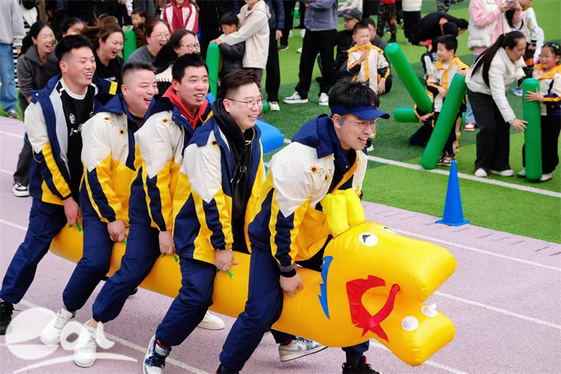 最让幼儿们期待的趣味游戏环节终于到来!游戏现场欢乐值拉满,爸爸妈妈和宝贝并肩作战、默契配合,玩得不亦乐乎。“火箭特种兵”、“培红娃娃上吴山”、“最棒培红娃”,幼儿们勇敢闯关,在钻、跳、跑中感受运动的乐趣与合作的快乐。“爸爸龙舟赛”将游戏运动氛围推向高潮,赛道旁呐喊声、加油声此起彼伏,幼儿们在感受拼搏精神的同时,更种下热爱运动、追求健康的种子。