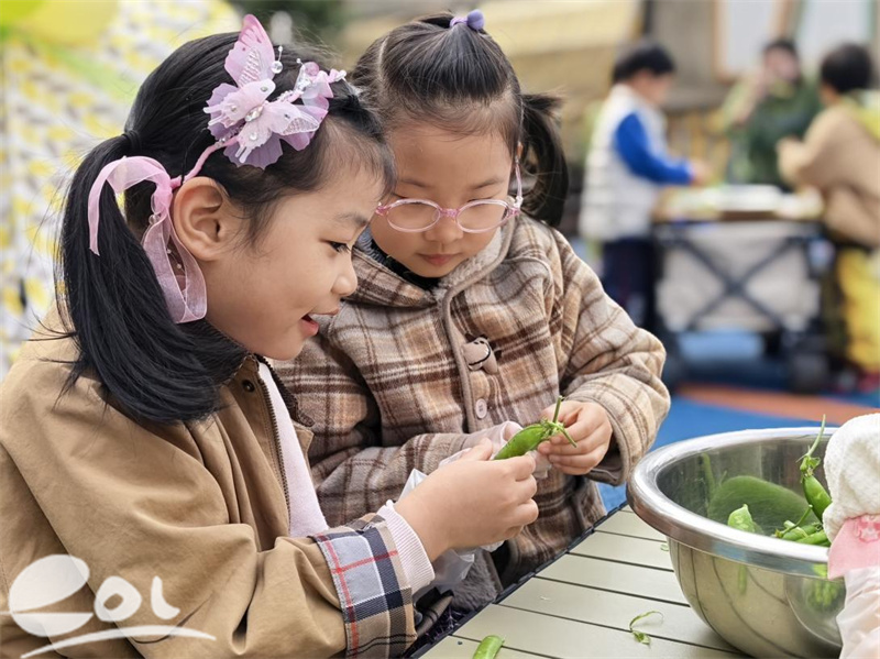 活动当天,幼儿园将春笋等时令春鲜搬入课堂,开设春日食材小课堂。孩子们通过看、摸、说等趣味形式,观察春日食材的形态、了解食材的营养知识,让孩子们近距离感受大自然的春日馈赠。