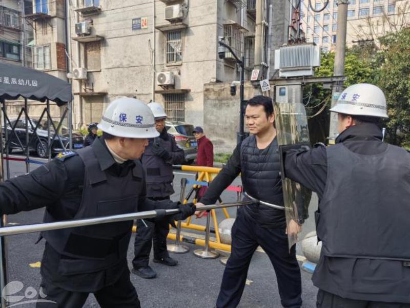接到一键报警信号后,法治副校长与辖区民警迅速抵达演练现场,全程现场指导应急处置工作。法治副校长沉着指挥,明确分工:指导保安团队结成防护阵型,合理运用防暴盾、钢叉等器材,从两侧迂回牵制“可疑人员”,避免正面冲突;提醒保安注意自身安全,以“阻隔、控制”为核心,逐步缩小“可疑人员”活动范围;同步指挥幼儿园后勤人员快速封锁校园所有通道,严禁无关人员进出,严防意外发生。在法治副校长的专业指导下,保安团队配合默契、处置规范,很快将“可疑人员”成功控制,消除了安全隐患。