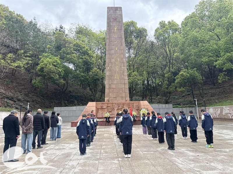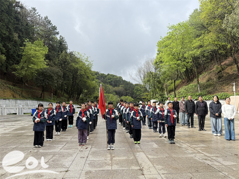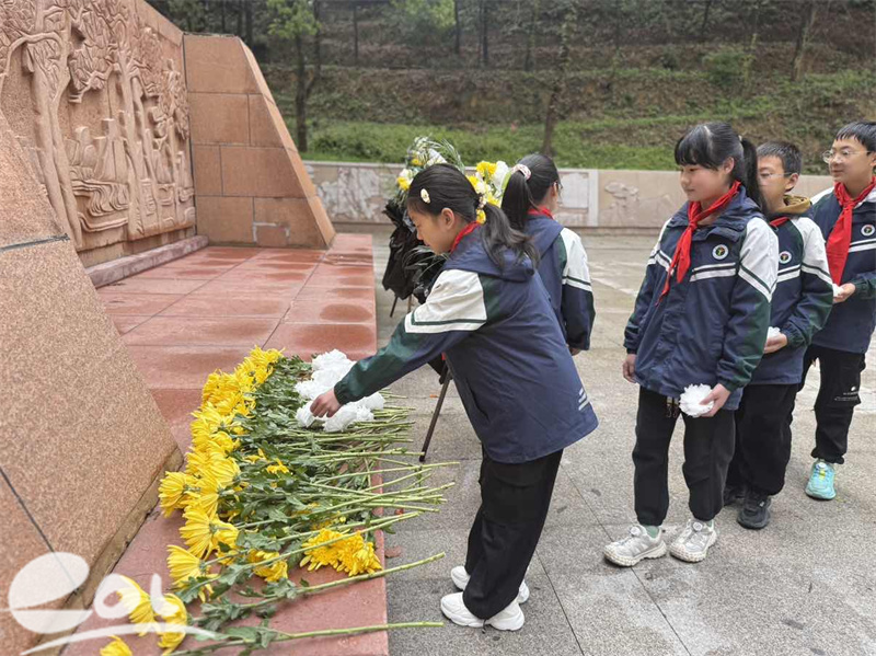 烈士陵园庄严肃穆,松柏苍翠,烈士纪念碑巍然矗立。全体党员佩戴党徽,学生身着校服、系红领巾,整齐列队,怀着崇敬之心走进陵园。活动中,五(1)中队学生手持洁白白花,依次敬献在烈士碑前,寄托深切缅怀。