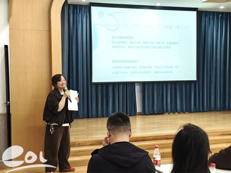 随后,副园长方老师围绕本学期幼儿成长规划进行了细致分享。她结合各年龄段发展特点,提出了明确的成长重点:小班依托特色草坪游戏,着力提升幼儿的自理能力与生活习惯;中班借助“麦思小镇”特色游戏,聚焦兴趣激发与思维发展;大班则通过篮球、足球游戏及幼小衔接特色走班制教学课堂,强化体魄锻炼与学习衔接,并计划开展球类项目展示活动,全面助力幼儿顺利过渡到小学阶段。