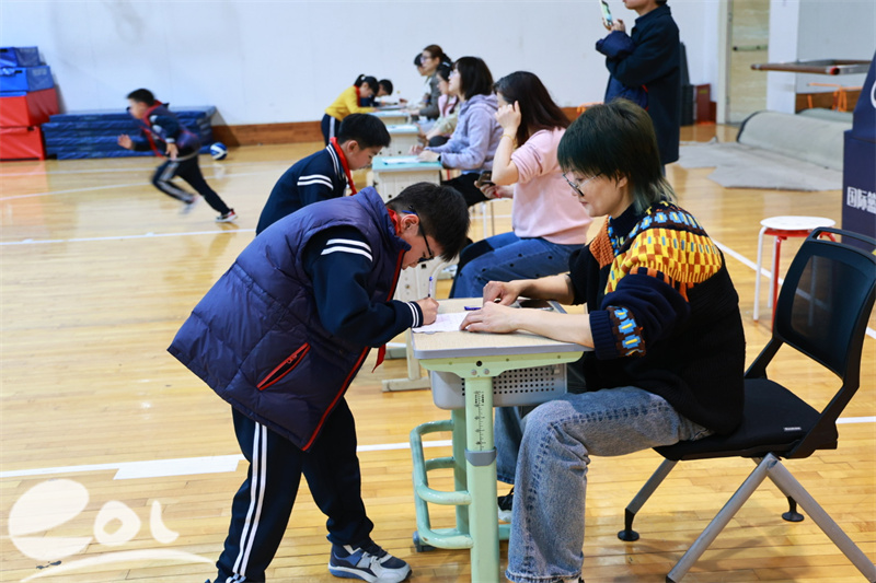 操场上、体育馆内,脚步声、加油声交织在一起,计算迎面接力赛正式开赛,同学们奋勇争先,展现出良好的精神风貌。