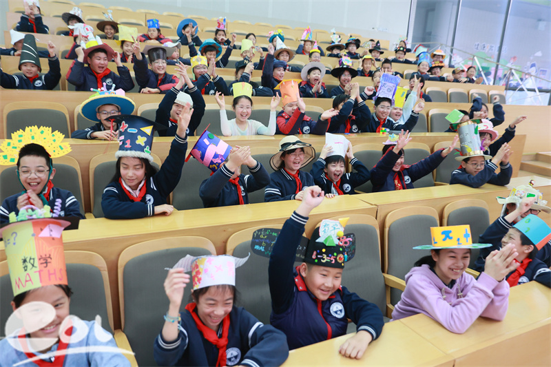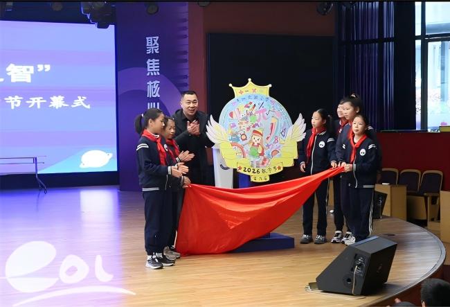 校长缪洪敏与五年级8位同学共同为本届数学节揭幕,揭晓了由406班万钦同学巧思独创的节徽。随后,缪洪敏校长为数学节致辞,寄语同学们在数学的世界里探寻乐趣、启迪智慧,在探索中收获成长。