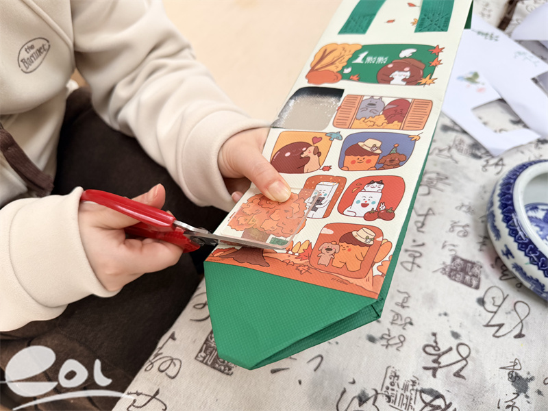 本次活动的核心环节是手工制作清廉主题冰箱贴,团员教师们充分发挥创意,结合清廉主题,利用两种特色素材精心创作,让清廉理念变得可触可感。一方面,大家选取蕴含清廉寓意的图片素材,有的是“莲花”“竹”等象征廉洁自律的植物图案,有的是“廉洁从教”“清风润教”等醒目标语,通过裁剪、覆膜、粘贴磁贴等步骤,将清廉元素定格在小小的冰箱贴上,每一幅图案都寄托着团员教师对清廉从教的坚守与追求。另一方面,大家积极践行绿色环保理念,收集身边的废旧纸袋,经过清洗、裁剪、折叠、装饰等工序,将原本闲置的废旧纸袋变身成精致的冰箱贴基底,再搭配清廉图片、手绘清廉图案,既实现了资源再利用,又让清廉教育与环保理念深度融合,传递出“勤俭节约、廉洁自律”的良好风尚。