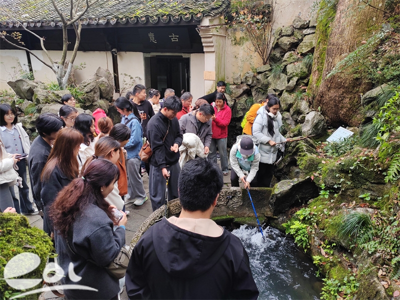 △ 师生在西湖龙井泉体验分龙须