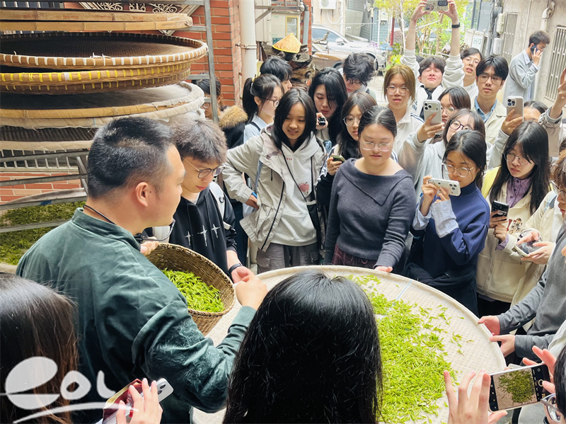 在龙坞茶镇,同学们走进茶园,在茶农的指导下学习采摘标准,近距离观看炒茶师傅展示“抖、搭、搨”等十大手法,感受“看茶做茶”的匠人精神。