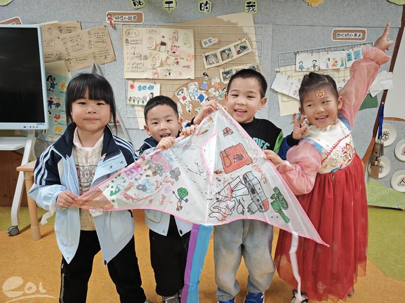 中班幼儿与自然对话、与传统相拥。孩子们采摘艾草制作花草蛋,在观察与实践中感受自然馈赠;创意绘风筝,用画笔勾勒春日想象,让传统文化在自主体验中生根发芽。