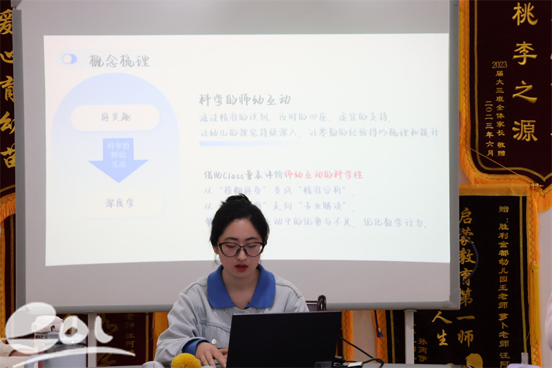 研训核心环节,各组教师围绕实践经验进行汇报分享。研训现场抛出三大核心问题,引导教师在聆听中深度反思。如何将CLASS量表高效融入常态化师幼互动?如何甄别有效师幼互动?如何立足幼儿兴趣,设计有意义的科学学习活动?