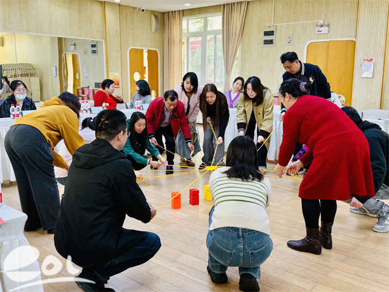 互动环节通过“合力筑塔”团建游戏。家委们齐心协力、相互配合,在合作中深刻体会到共情共育、陪伴成长的重要性,为后续交流与合作奠定了良好基础。