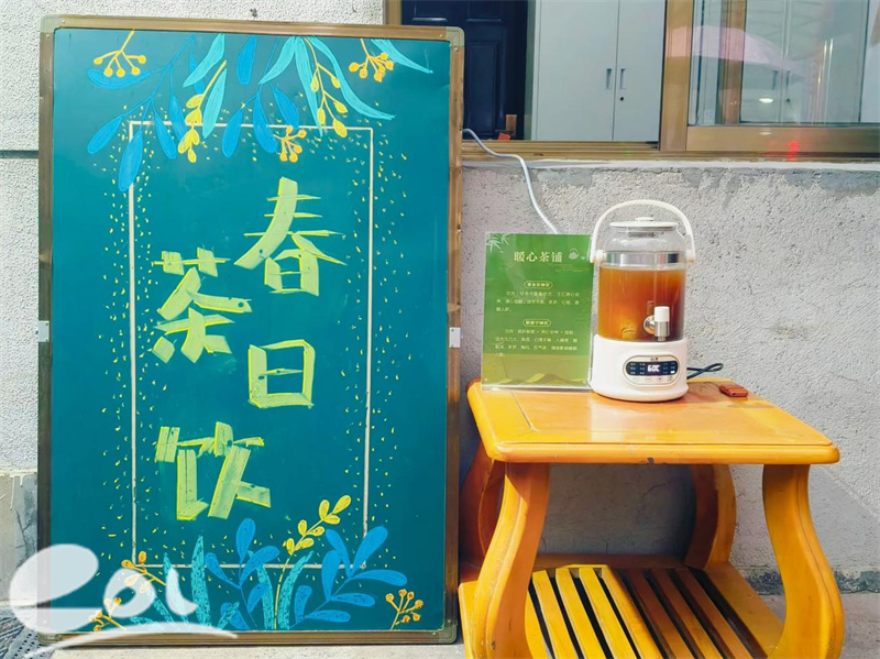 “汤一汤”融合中医“春养肝”智慧,将“一杯好心情”暖心茶饮推送到每一个学生社区。每日午后,师生可免费取用由中医专门定制的具有疏肝安神功效的养生茶饮,在校园内成为一道温暖风景。来自外国语学院的张同学捧着一杯温热的茶饮说道,“每天下午上课出门就能喝到一杯热茶,感觉特别暖心。而且听说这个茶是中医配方安神解郁的,喝起来很安心,学校的关怀真细致。”