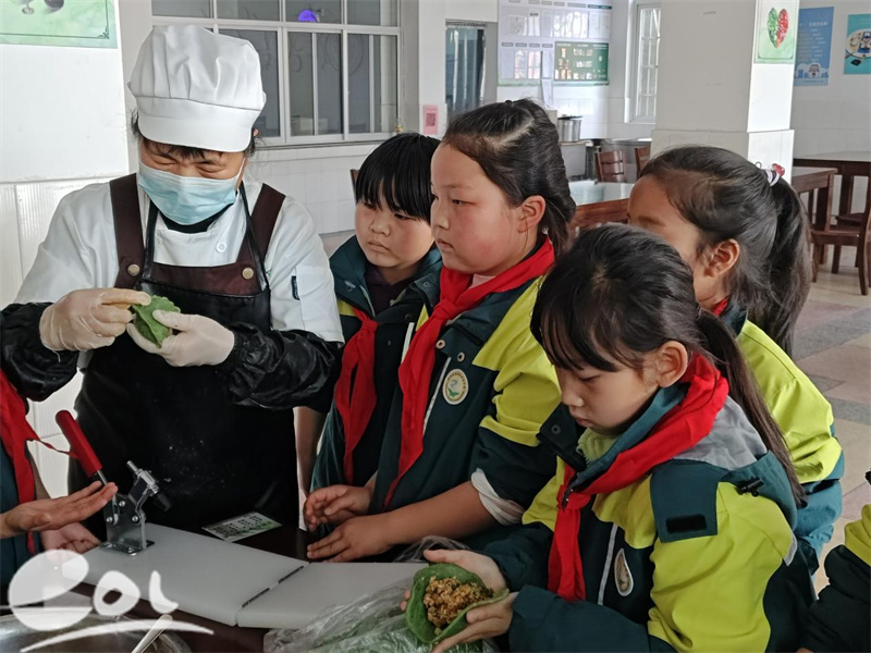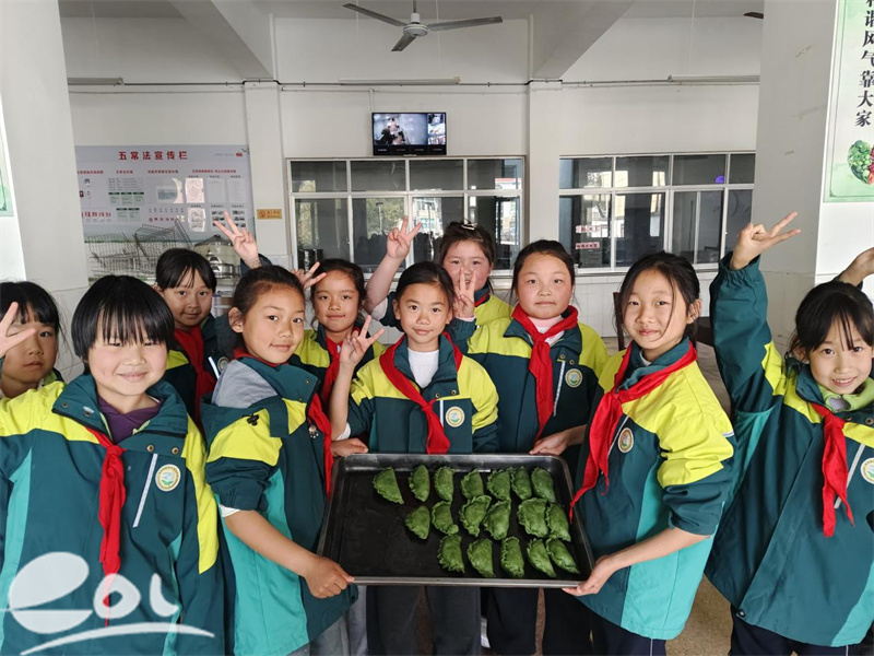 活动中,老师带领学生走进校园自然区域,开展“寻艾、拾艾”实践,讲解艾草功效及清明与艾草的关联,让学生在亲近自然的过程中了解传统习俗背后的文化意义。拾艾结束后,学生们在食堂阿姨的指导下,动手完成清明果制作,从艾草处理、面团揉搓到馅料包裹,全程参与实践,在欢声笑语中体验劳动乐趣,寄托对先贤的缅怀之情。