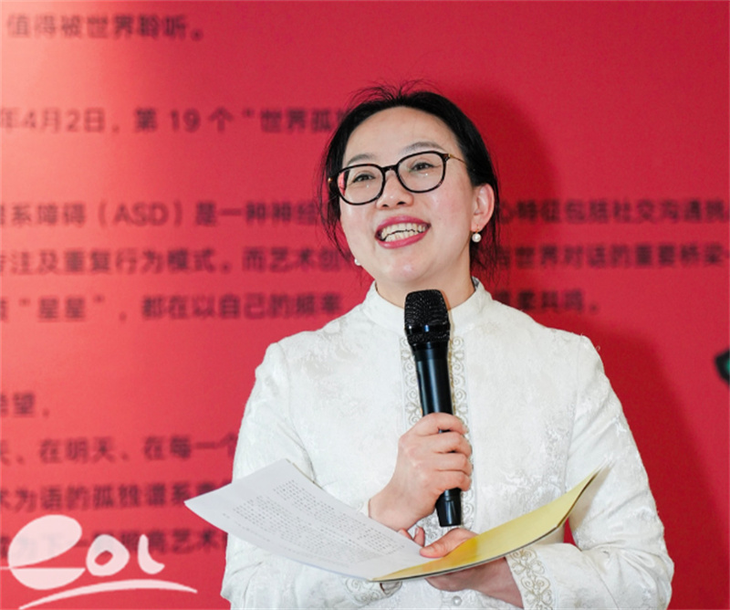 “这场展览,正是为了这些孩子搭桥、铺路。”展览总策划、尘雾之微创始人、杭州拱墅滴水公益理事长张巧琳在开幕致辞中表示,“我们相信,每一位‘星星的孩子’都是独一无二的光芒。但这份光芒,需要被更多人看见。”