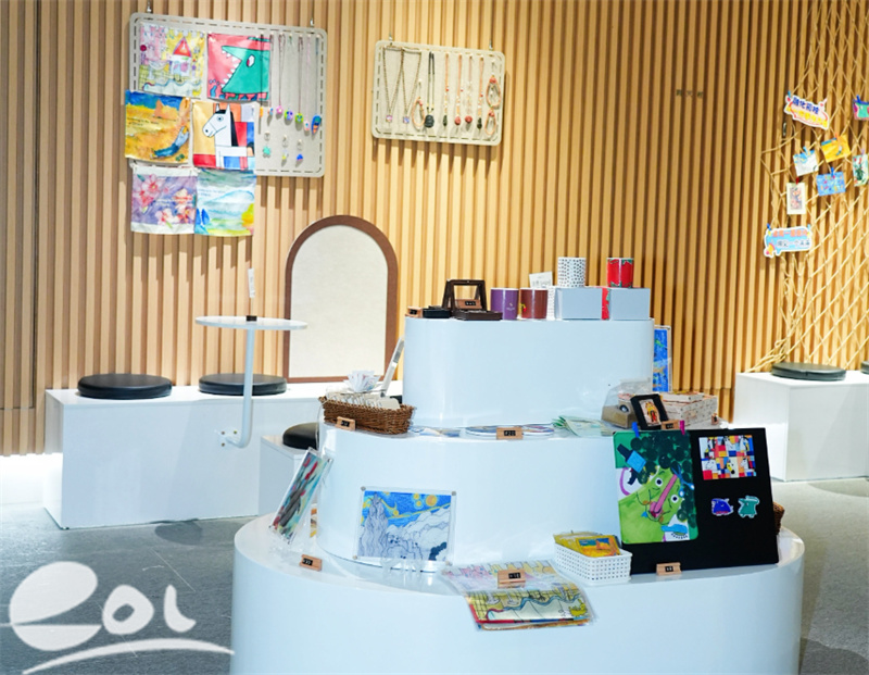 展览中设立的文创区,正是面向可持续融入的探索。帆布袋、明信片上印着“小艺术家”们的画作。“我们始终相信,艺术是跨越语言的沟通,是点亮心灵的光芒,更是促进社会融合最温柔也最有力的方式。”浙江省妇女儿童基金会副秘书长江盼盼如是说。