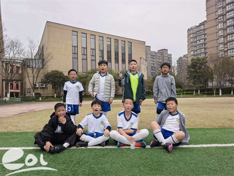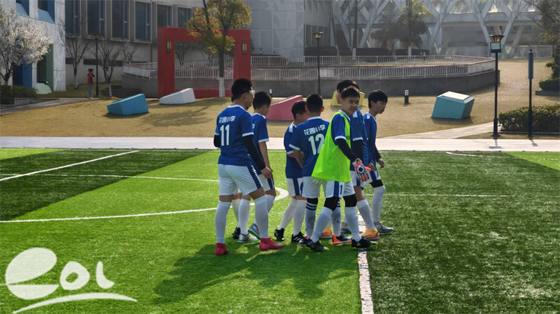 男子乙组参赛队伍众多,赛事也最为密集,不到一周时间内需完成5场比赛,几乎每天一场,这对队员们的体能储备与赛后恢复都是巨大考验。开赛第二天,方校在前往富阳洞桥营地参加六年级研学途中,得知乙组正在附近比赛,特意转道前往现场为队员们加油打气。半场结束时,学校仍以1:2暂时落后,但队员们看到方校长前来助威后,个个奋勇争先,最终以3:2强势逆转战局。