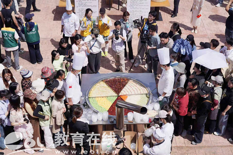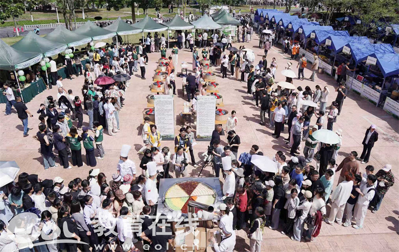 本次市集布局别具匠心,按小吃制作形式精准划分,让师生既能“吃得尽兴”,又能“看得有趣”。在“现场制作展示区”,面点师傅娴熟的手法引得阵阵赞叹,揉、捏、拉、扯间,一份份热气腾腾的传统小吃新鲜出炉;“成品展销区”前排起长队,金黄酥脆的炸物、软糯香甜的糕点令人垂涎。最引人注目的是“非遗美食限定集市”,汇聚全省各地非遗美食瑰宝,每一口都是岁月沉淀与匠心传承。