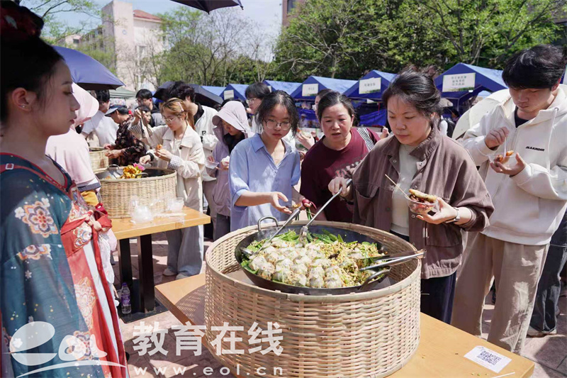 当天,由浙江省供销社举办的“农家小吃・共富味道”市集进校园首发仪式同步举行,为在校师生带来一场春日美食之旅。漫步市集,地道“浙江风味”扑面而来,40个展位汇集全省各地特色菜品、农家小吃,成为连接田间与校园、农户与师生的共富直通车。