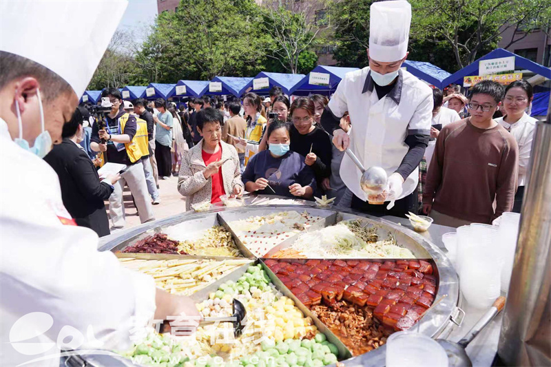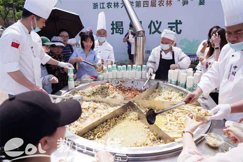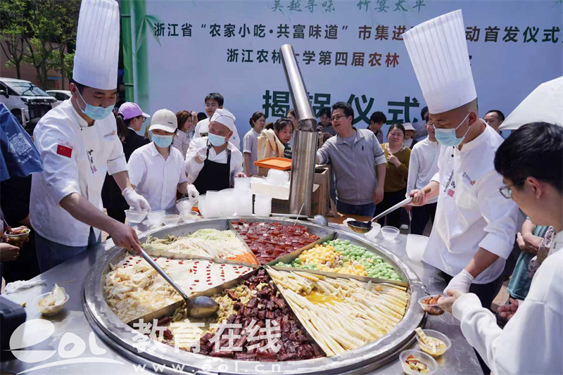 当天,由浙江农林大学、杭州市临安区政府、浙江省农家小吃协会等共同主办的浙江省“农家小吃・共富味道”市集进高校活动首发仪式暨浙江农林大学第四届“笋”宴开幕式在这里举行。这是该校第四次举办笋宴,也是首次与“农家小吃·共富味道”市集深度融合。