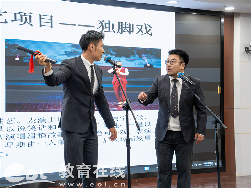 当杭州摊簧、独脚戏、小热昏等本土非遗曲艺遇上高校青年,会碰撞出怎样的文化火花?近日,浙江财经大学“风雅学涯”名家讲堂火热开讲,杭州滑稽艺术剧院非遗传承团队走进校园,将浙派乡土曲艺融入美育课堂,为青年学子带来一场可听、可看、可感的传统文化美育课堂。