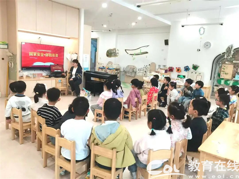 “我们可以怎么保护国家的安全呢?”各班结合年龄特点和班级特色,有的观看国家安全主题科普视频,有的聆听《闪闪的红星》绘本故事,有的贴起了红色中国图,还有的设计绿色家园。小手拉小手,一起来保卫我们的祖国。孩子们在沉浸式体验与学习中,初步建立“国家安全与每个人息息相关”的认知,在心中播下爱国护安的种子。