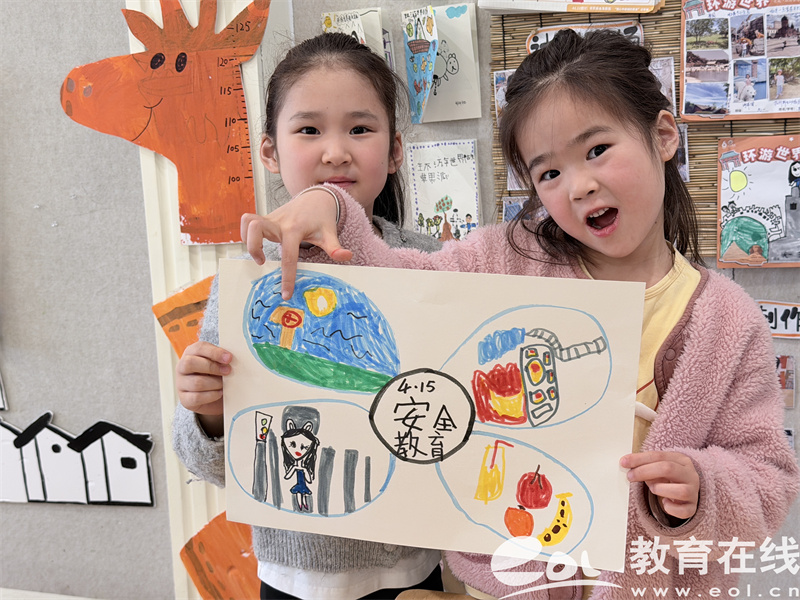 “今天我也要来做国家安全小宣传员!”中大班的哥哥姐姐自己设计《国家安全宣传海报》向弟弟妹妹们进行解说,介绍“4·15”国家安全教育日知识。