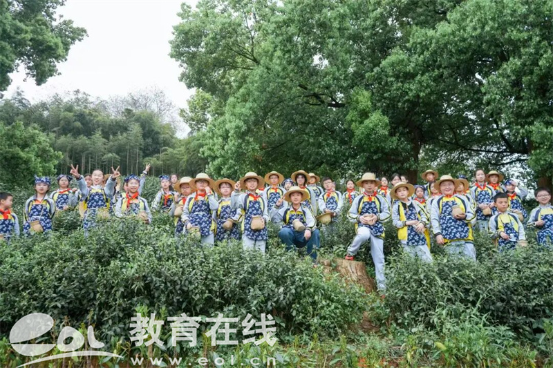 同学们化身“小小茶农”,挎上小竹篓走进茶园,在老师指导下学习采摘标准,指尖轻捻嫩芽,认真体验采茶乐趣。茶田间,稚嫩的身影穿梭其间,处处洋溢着童真与朝气。