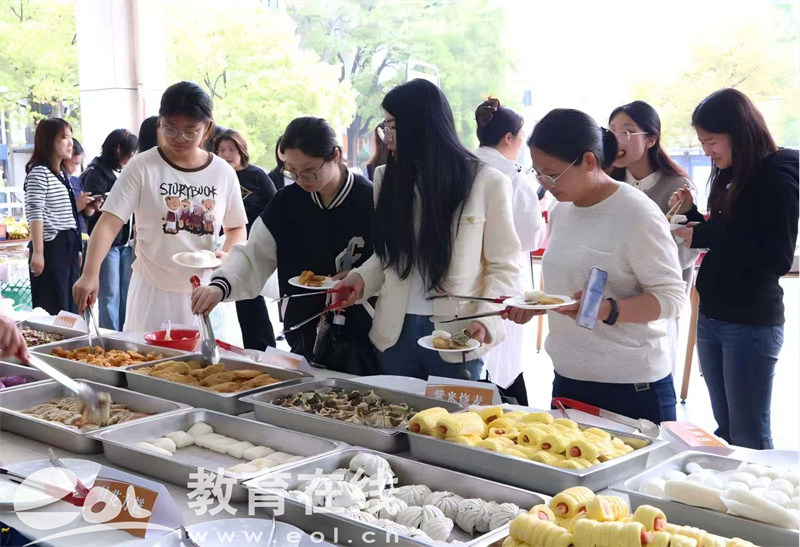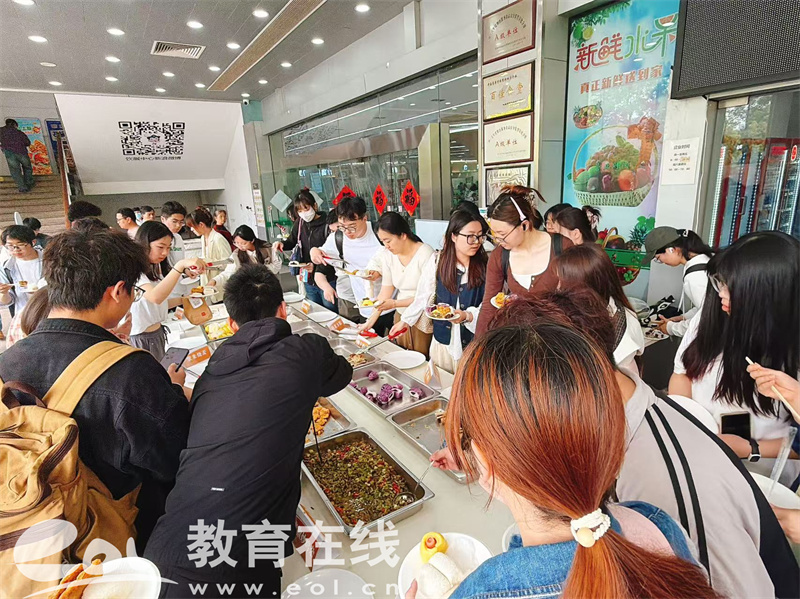 活动现场,港式椰丝包、紫米烧卖、小米椒鸡杂、香酥带鱼等数十余种早餐、中餐特色菜等品类整齐陈列,色泽鲜亮、香气扑鼻。师生们有序取餐、边吃边交流,不时提出试吃感受,欢声笑语不断,整个食堂充满了温暖的烟火气息。