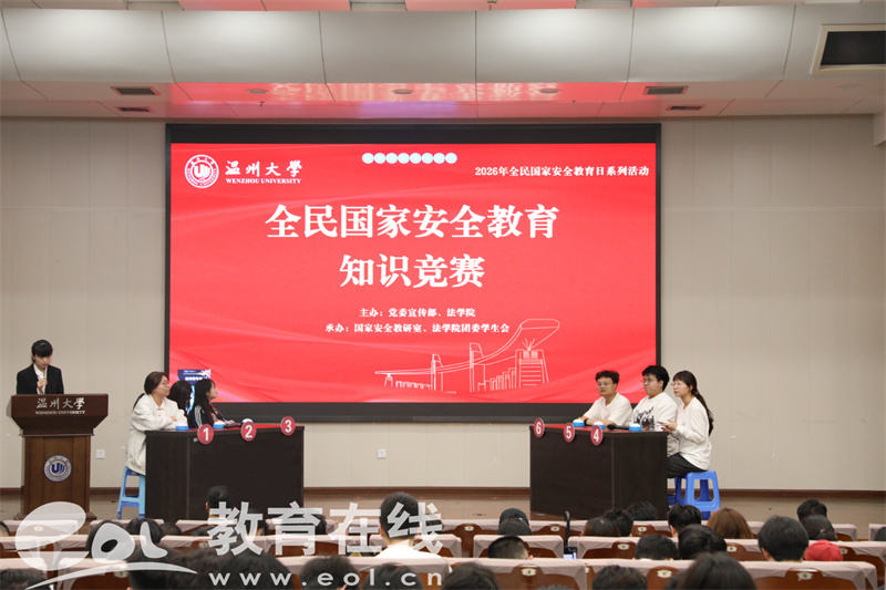 为营造“国家安全、人人有责”的浓厚氛围,温州大学举办2026年全民国家安全教育知识竞赛。活动自预热宣传阶段起便备受关注,吸引全校各学院学子踊跃报名。经过初赛交锋,12名优秀选手脱颖而出,站上决赛舞台。