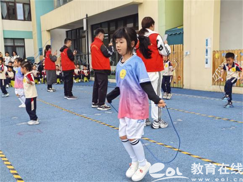 “绳”彩飞扬个人吉尼斯赛率先拉开帷幕,9名跳绳好手脱颖而出,晋级决赛。清脆的哨声划破赛场,“哒哒”的绳击地面声与急促的喘息声交织,奏响一曲充满生机的春日乐章。最终,3金3银3铜各有归属,小选手们手捧奖牌,脸上的笑容比春日里盛放的花朵还要灿烂。