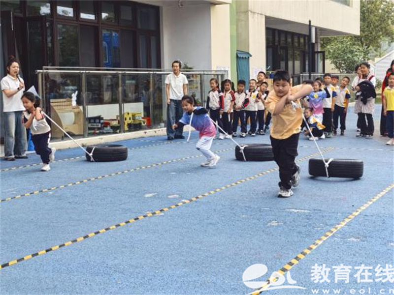 “轮胎拉力赛”中,孩子们咬紧牙关拉着轮胎绕过一个个障碍,小小的身影里迸发出惊人的力量。