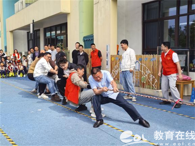 大朋友们的“力拔山河”拔河赛将现场气氛推向顶点,爸爸队与妈妈队分别进行比赛,他们紧握长绳、脚蹬地面、奋力拼搏,为孩子们树立了坚持到底、团结协作的榜样。