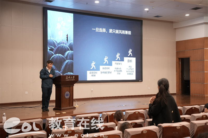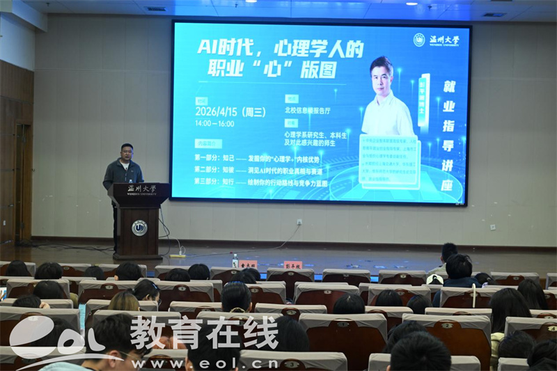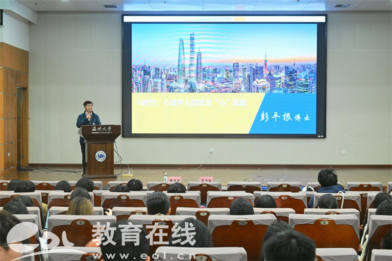 当AI、心理学遇上职业发展,会碰撞出什么样的火花?日前,温州大学教育学院特邀人社部青年就业创业指导专家、中央企业智库联盟高级专家彭平根博士,为心理学系全体本科生、研究生开展主题为《AI时代,心理学人的职业“心”版图》的就业指导讲座。本次讲座也是学院2026年第3期溯初大讲堂活动,由学院党委副书记兼纪委书记章志图主持。