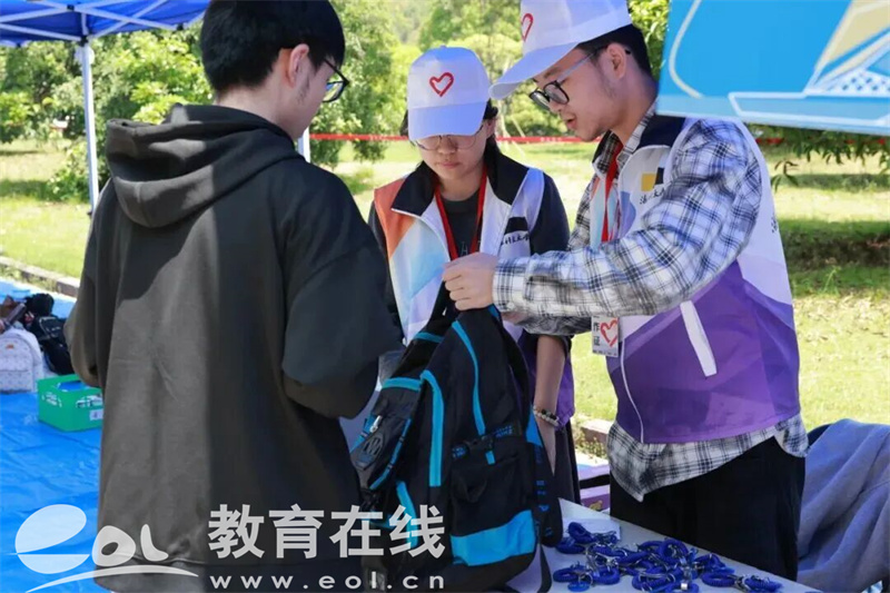 今年,学校组建由360名志愿者组成的服务团队,其中线上志愿者210名,提供一对一线上指引服务;线下志愿者150名,负责交通引导、行李寄存等工作。