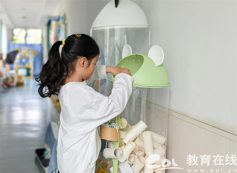 孩子们带来了在家收集的矿泉水瓶、废旧纸芯桶,踮起脚投进环保回收桶,用实际行动践行“变废为宝”,让有用的垃圾不再“流浪”。小朋友们将废旧报纸捣成纸浆,混入神奇的奇亚籽,小手揉捏成一颗颗蓝绿色的地球,每天给它喷水、晒太阳,等待嫩绿的芽苗从“地球”上破土而出。此外,孩子们还制作了许多环保标语:“节约水资源、绿色出行、垃圾分类……”