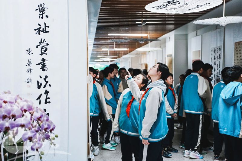 开幕式后,全体师生、家长与嘉宾移步展区观展,在笔墨丹青中感受传统文化魅力。一幅幅笔墨佳作、一张张认真脸庞,让书香墨韵浸润校园,让美育力量深入人心。